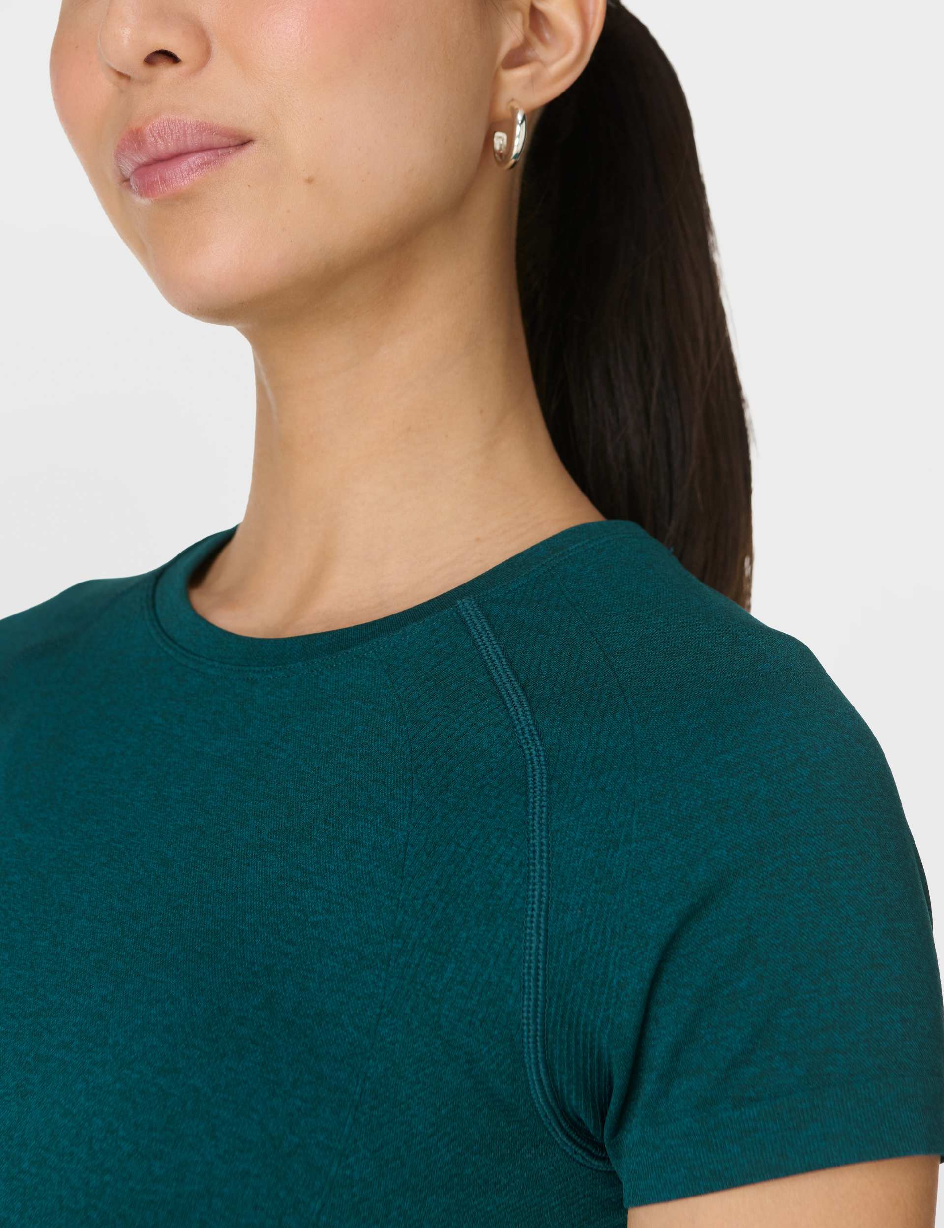 Athlete Seamless Workout T-Shirt - Petrol Green Deep Green Marl